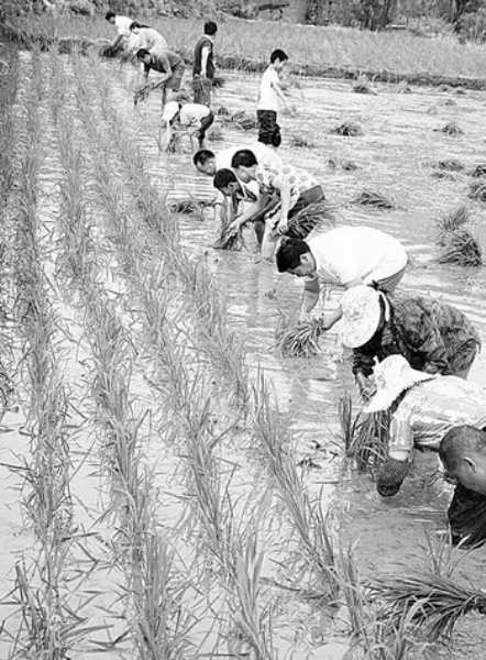 6月5日,四川广元利州区大石镇五四村村民正在插秧。该村有260多亩水田,当地群众不等不靠,抓紧农时,生产自救。 本报记者 李景录摄