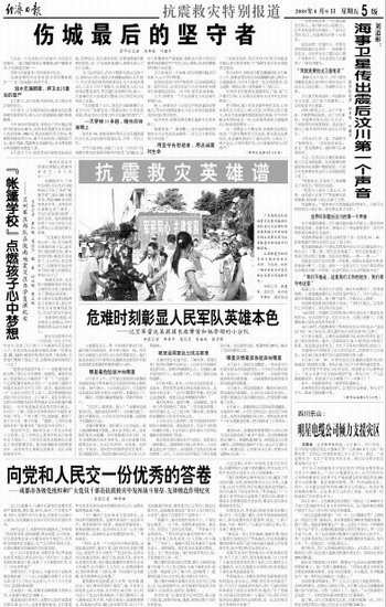行走在一片沉寂的北川县城中,身后是不停渗水、一墙之隔的唐家山堰塞湖,眼中噙着泪水,行动铸就忠诚……