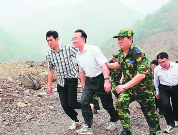 国务委员兼国务院秘书长马凯一起察看了唐家山堰塞湖,并看望武警官兵、转移群众和水利专家。