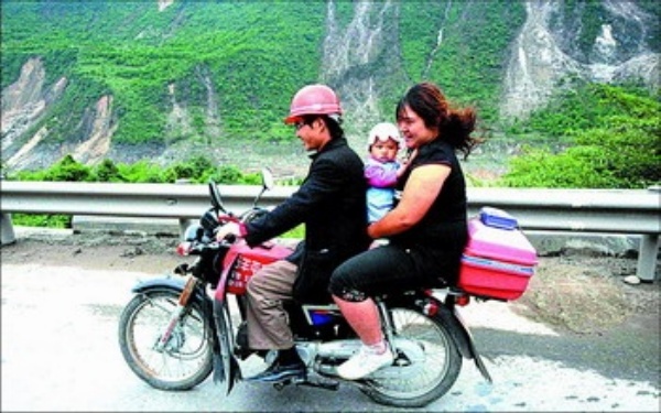 5月30日,四川都江堰漩口镇外公路上,许贵一家人正骑着摩托车返回家中。这几天,随着道路、水电等逐渐恢复,该镇受灾较轻的群众已开始陆续返家开展生产自救。