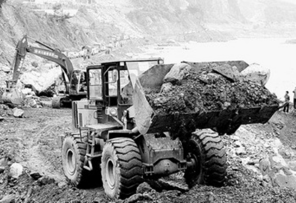 四川成都至汶川县映秀镇途中,工人正在紧张抢修公路。连日来,这条路因余震和泥石流造成局部阻断,四川路桥集团的抢险突击队全力抢修,确保畅通。 本报记者 李景录摄