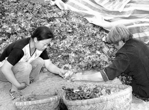 唐思林(左)和家人正在抢收木耳。 四川省彭州市红岩镇梨花村是地震重灾区,该村10组村民唐思林是木耳种植专业大户,地震袭来,唐思林培育木耳的耳房、耳架倒塌,受灾严重。唐思林不等不靠,生产自救,力争把地震灾害造成的损失夺回来。 本报记者 李江天摄