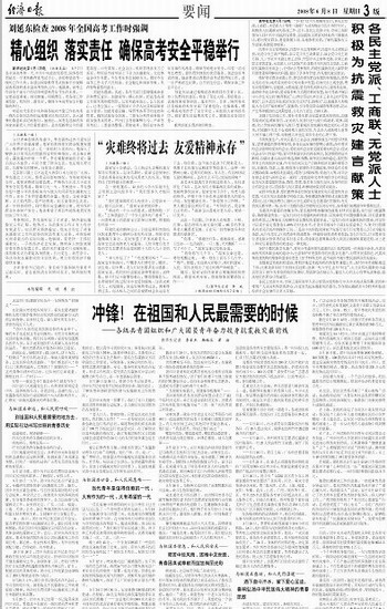 各民主党派、工商联、无党派人士积极为抗震救灾建言献策