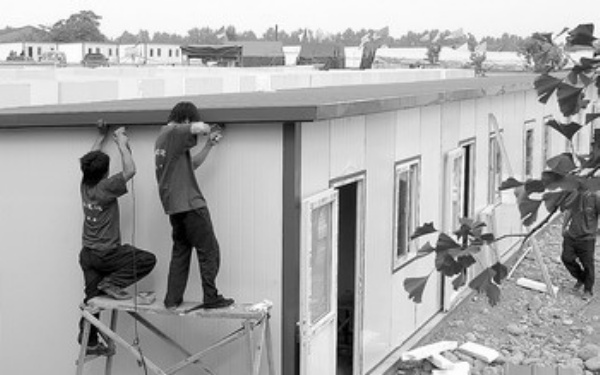 为了保证工程顺利推进,在后方,他们对彩板房工人进行培训,让他们熟悉并掌握板房安装技术,提高安装效率;在前方,项目部已经成立了工程、后勤保障和综合办公等3个工作小组,并制定出各项相应的管理制度,以保障机构的高效运行。到目前,已分别制定出《工作纪律》、《安全管理制度》、《援建施工现场安全检查制度》、《区域环境保护措施》、《援建施工现场消防保卫管理制度》、《食堂卫生保证措施》、《宿舍卫生保证措施》等七项管理制度,并制作成制度牌张贴在指挥部明显位置,指定相关人员负责宣传贯彻和检查、监督落实。