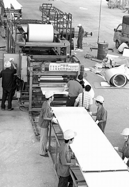重钢的首条板房生产线,每天的产能为1万平方米。记者在现场看到,技术工人正熟练地将赶制出的板材切割并搭建成样品房。为了保质保量完成救灾过渡安置房生产任务,重钢专门花300多万元从外地购进了6台生产设备,并临时从子公司抽调出300名工人加班加点赶工争取6月底完成14万平方米板房夹芯板,8月10日前完成80万平方米夹芯板生产任务,可解决12万受灾群众住房问题。