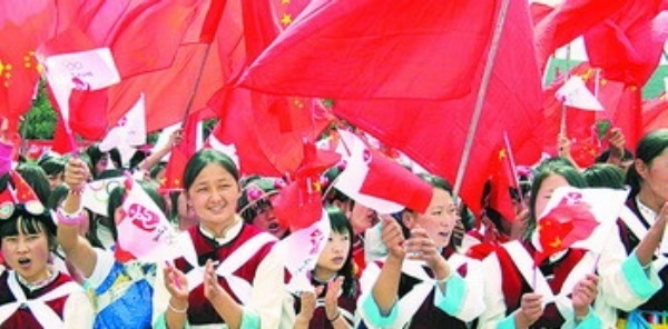 1996年,丽江曾经历了7.0级地震。12年过去,从地震中勇敢站立起来的丽江人民,用自己勤劳的双手建设家园。丽江是同时拥有丽江古城世界文化遗产、“三江并流”世界自然遗产、东巴古籍文献世界记忆遗产三项世界级桂冠的城市,这里已经成为驰名中外的国际旅游城市。这两个分别来自地震灾区的少数民族孩子共同完成第一棒的传递,表达了云南人民与四川灾区人民心连心的深厚情感。