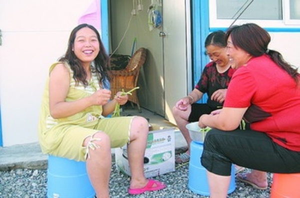 肖耳碧拿着洗发水、香皂、毛巾走进女公共浴室。“每天出车回来能洗个热水澡,我太满意了。”可能是因为洗掉了一天的劳顿与尘土,走出浴室的肖耳碧显得格外精神。她边在灶前炒着豆角边与记者聊天:从丈夫、公婆、姑姐,到救灾的解放军、搭板房的北京工程师,人人都对有身孕的她关爱备至,就连坐“川马”的乘客见她是孕妇,也对她特别关心。她说,“我自己都有些不好意思了,大家都那么忙,都在为重建家园出力,我如果不把自家的事做好,那怎么行……”