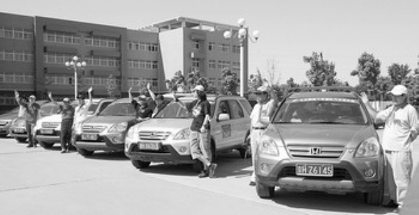 五月三十日,“爱心直通车”车队准备出发。当日,北京鹏程万里国际汽车俱乐部车队带着通州区潞河中学分校学生们写的爱心卡片,以及北京市民为灾区儿童购置的“六一”儿童节礼物,第二次奔赴四川灾区。 新华社记者 鲁金博摄