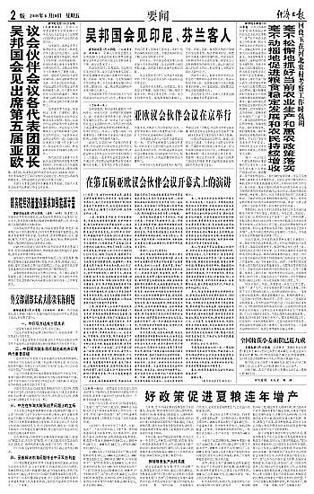 吴邦国会见出席第五届亚欧议会伙伴会议各代表团团长