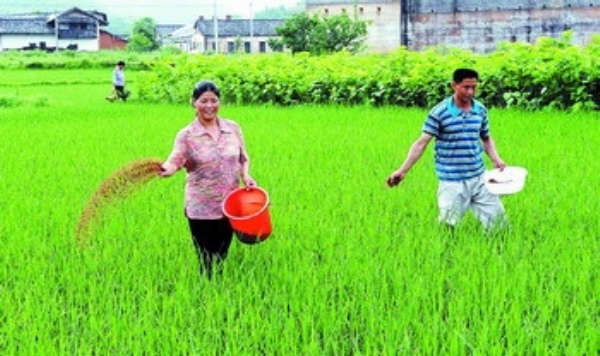 6月19日,江西赣州龙南县关西镇新围村的村民徐荣赞、蔡春英夫妇正在田里给水稻施肥。目前,该县抓紧有利时机,加强农作物田间管理,确保粮食取得好收成。 本报记者 李景录摄