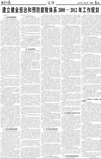 建立健全惩治和预防腐败体系2008—2012年工作规划