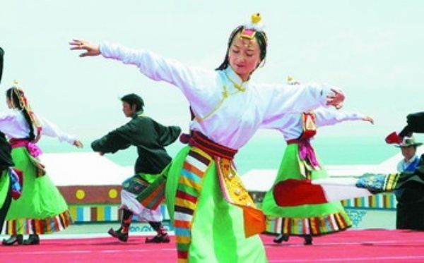 23日一早,海南州各族群众身着节日盛装,手捧哈达,聚集在青海湖畔的起跑仪式现场。他们载歌载舞,喜迎奥运圣火的到来。来自海南州歌舞团的藏族青年多布杰告诉记者,他们已经排练了1个多月,就是为了以优美的舞姿迎接奥运圣火的到来。他说:“奥运圣火来到海南州,来到美丽的青海湖畔,是海南州人民的骄傲。我们要为奥运圣火加油,为奥运加油!”