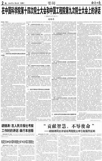 在中国科学院第十四次院士大会和中国工程院第九次院士大会上的讲话
