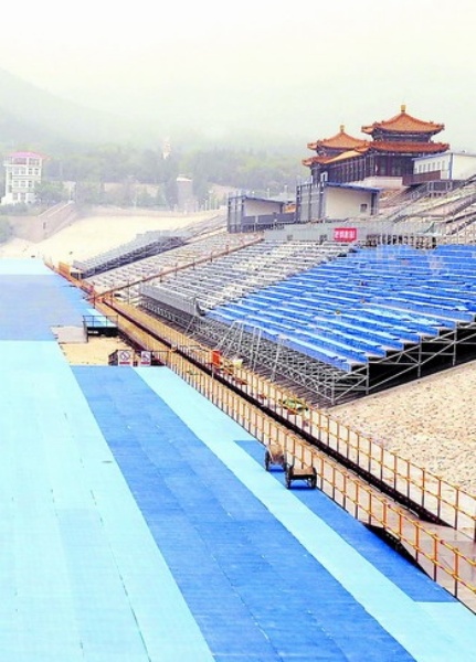 位于北京昌平区十三陵水库的铁人三项比赛场将举行北京奥运会铁人三项的比赛。这个依山傍水的赛场,被国际铁联称为“世界上最亲近大自然的场馆”。 新华社记者 王 颂摄