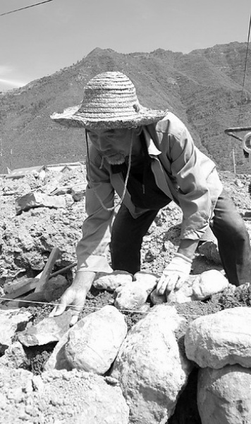 上图 6月25日,陇南市康县豆坪坝村,忙完麦收的村民投身紧张的重建工作中。本报记者 李琛奇摄
