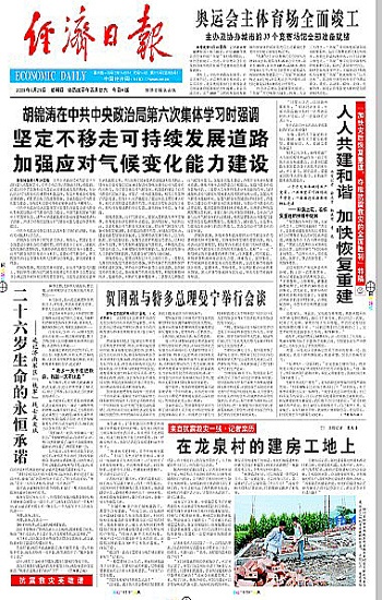 都江堰商务局局长邹士勇说,他的电话都快被打爆了,“都是表示支持重建的,汇源要来投资3亿元,农夫山泉要来建生产基地……”