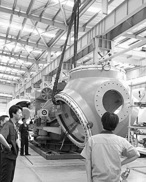 这是江苏新誉风力发电设备有限公司工人在吊装风力发电机机头。近年来,苏南地区的苏州、无锡、常州等地加快产业升级步伐,以风能发电设备制造、太阳能光伏产业为代表的新能源产业迅速崛起。