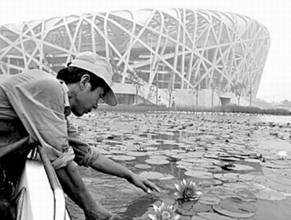 6月20日,北京奥运会主体育场———国家体育场开始摆放“奥运花卉”。 新华社记者 刘浦泉摄