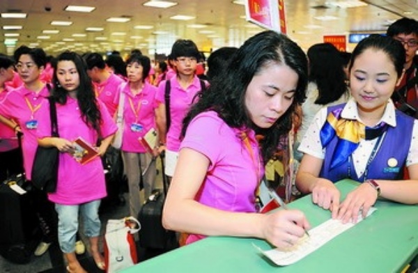 抵达机场后,北京旅游团被安排在专门通道办理出关手续。机场以传统的舞龙舞狮和台湾当地少数民族歌舞迎接盼望已久的客人。
