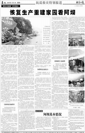 地震发生一个多月后,记者在阿坝采访,到田间地头,进工厂车间,访活动板房,时时处处都能感受到阿坝各族人民坚忍不拔、共克时艰、自力更生、重建家园的精神,处处都充满了积极向上的氛围。