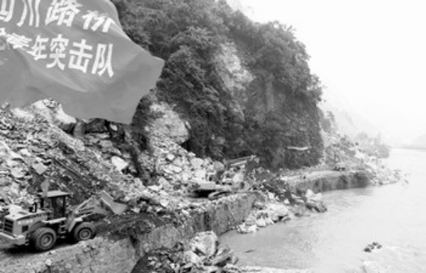 据四川省交通厅介绍,目前,成都经宝兴、小金、理县至汶川,213国道都江堰至映秀段及川主寺经松潘、茂县到汶川段,302省道线壤口经黑水至茂县段畅通,茂县县城至北川禹里望江村段,303省道小金经卧龙至耿达等路段,处于保通阶段。而咽喉部位国道213线映秀至汶川段,已从映秀向汶川方向推进至银杏乡,共打通10.8公里,其中映秀上游4公里处堰塞体造成的湖面淹没路段采用槽渡和冲锋舟渡过;从汶川向映秀方向已推进至彻底关大桥头,共打通9.6公里,两端累计已打通20.4公里,还有7.6公里正在打通。从6月24日开始,在彻底关大桥下游200米处已开始为搭建渡河钢便桥作准备。