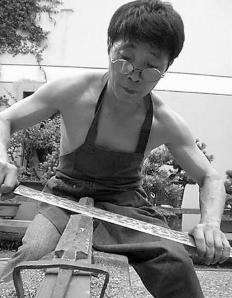 跟陈阿金同期进厂的有20多人,全部开了剑铺,当了老板,不再亲自铸剑。在炼剑炉旁挥汗如雨的只剩下陈阿金一人。“他从来不知道剑的价格,人家打白条把剑拿走,时间长了他就忘了,有的剑做了几个月,他和人家谈得高兴就送出手,自己到现在也没能留下几把好剑。”面对妻子的嗔怪,陈阿金连声说:“不卖了,不送了,以后都留着给博物馆用。”