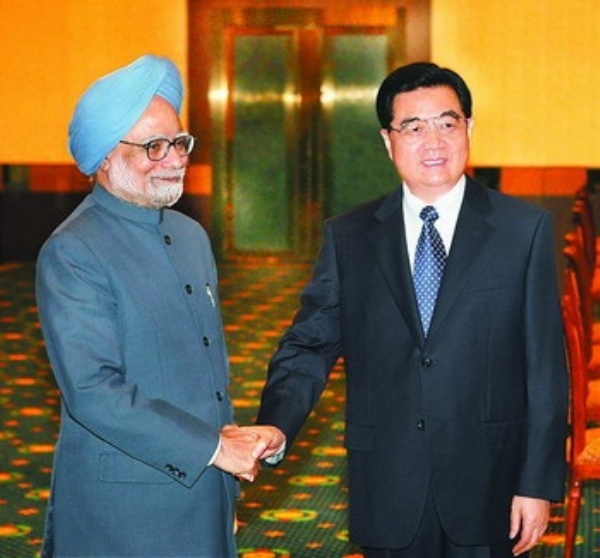 胡锦涛指出,当今世界正处在大变革大调整之中,一个突出特点是中印等发展中大国兴起,这是任何力量都阻挡不了的。作为发展中大国,中印都面临着发展经济、改善民生的共同任务,肩负着维护世界和平、促进共同发展的重要使命。在气候变化、能源安全、粮食安全、多哈回合谈判等问题上,中印面临着共同的压力和挑战,有着相同或相近的立场和主张。中方愿同印方加强沟通和协调,维护发展中国家的正当权益,实现共同发展。