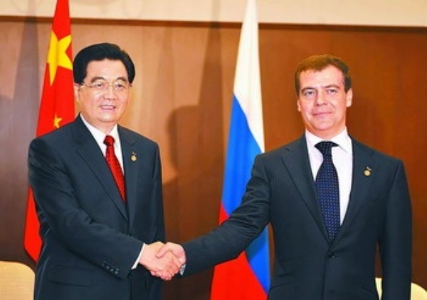 梅德韦杰夫赞同胡锦涛对两国关系的评价和建议。他表示,俄中关系处于高水平,两国元首保持密切沟通和对话,对两国关系发展至关重要。俄中各领域合作进展顺利。希望双方能源谈判代表尽快会晤,开展工作。俄方将尽快任命“语言年”俄方组委会主席。俄方感谢中方高度重视两国机电产品贸易和合作,希望双方进一步努力,使有关合作取得更大成果。