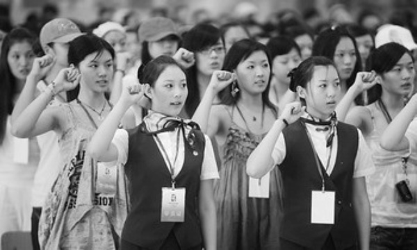 7月12日,参加北京奥运会和残奥会颁奖仪式培训的志愿者集体宣誓。当日,337名来自北京和上海的北京奥运会颁奖仪式专业志愿者汇聚在北京昌平职业学校,参加由北京奥组委文化活动部主办的奥运会颁奖仪式专业志愿者全员培训开班仪式。经过15天封闭式集中培训后,这些志愿者将到各个场馆进行奥运会和残奥会颁奖礼仪服务。 新华社记者 罗晓光摄