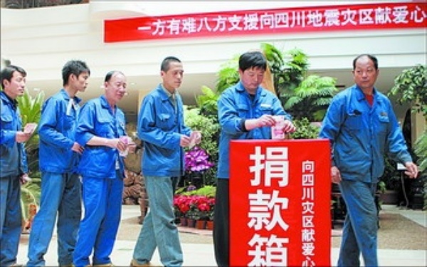 四川汶川大地震发生以后,荣程联合钢铁集团公司的员工积极为灾区捐款。作为天津市龙头企业,该公司十分注重培育企业的社会责任意识,在此次抗震救灾中,荣钢集团员工积极捐助,赢得广泛赞誉。