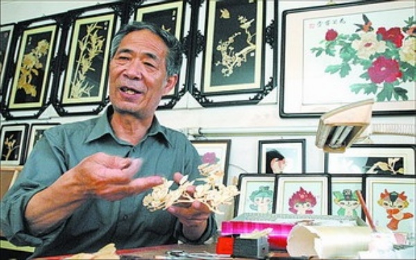 市民王天庆在展示他用麦秸制作的精美图画。作为“中国民间艺术之乡”,津南区在对民间艺术文化进行挖掘、整理的同时,注重将时代特色融入其中,不断推陈出新,形成了古今结合、古为今用的艺术特色。