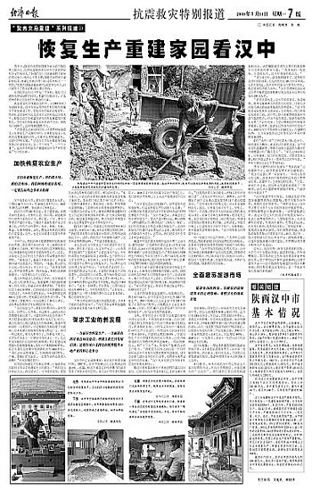 对口支援汉中的是天津市。“天津市工业经济发达,我们希望他们不仅仅是帮助灾区盖板房,还希望用他们的优势来帮助提升本地产业的核心竞争力。”汉中市发改委副主任周大光说。汉中市已经确立积极调整产业布局的思路,将围绕对口支援的重点、热点和共建平台,加强项目对接;抓住对口支援的机遇,加强联系沟通,不断扩大协作领域,促进两市共同发展。