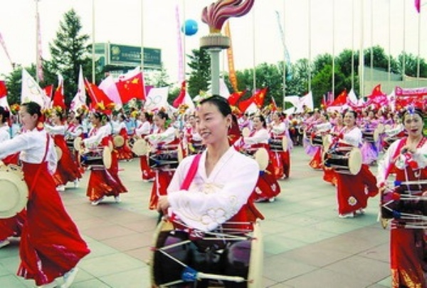 “祥云”火炬7月14日在吉林省的第一站长春市传递,长春市到处洋溢着喜庆气氛。