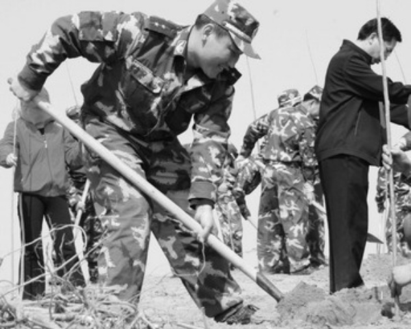 为进一步巩固拓展“十五”期间生态建设成果,内蒙古军区近日出台了2008—2012年生态工程建设规划,规划再完成9项重点生态工程,抓好20个义务植树基地和60片生态绿地建设。同时对营区绿化提高标准,要求部队绿化面积不低于营区基地面积的30%,实现营院周边春有花,夏有荫,秋有果,冬有青,部分部队还要在营区建起一座座瓜果长廊。
