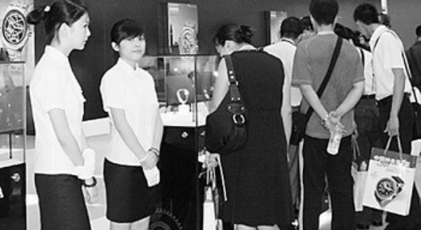 在亨得利北京王府井店,劳力士、江诗丹顿等国外手表品牌的广告牌十分引人注目,国产手表品牌则显得有点冷落。据销售人员介绍:“在中端市场,国产品牌手表卖得比较好,但是一些万元以上的表,基本上还是以瑞士品牌为主。”记者走访发现,目前在钟表市场上,瑞士品牌占据了高端市场,在低成本的石英表和电子表的冲击下,一些老国产手表品牌的处境较为艰难。