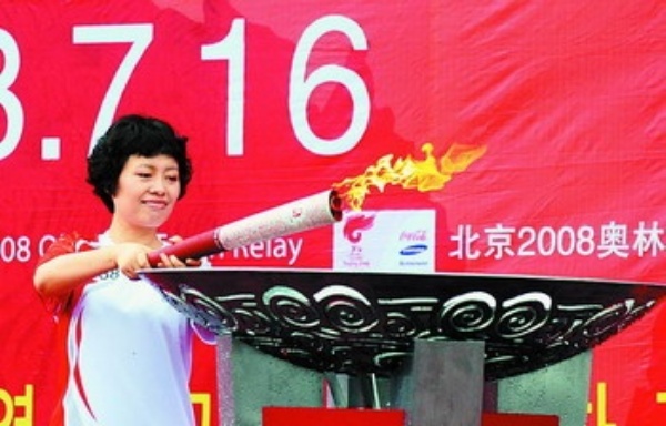 7月16日,奥运圣火来到吉林省延吉市传递。由于天气的原因,原定于上午开始的延吉站奥运圣火传递改在下午举行。