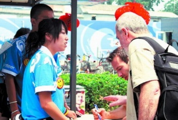 随着奥运会的临近,北京街头随处可见城市志愿者们的身影。 本报记者 何东宪摄