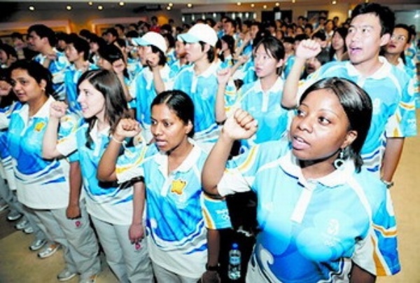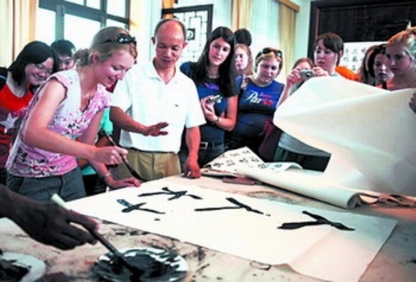 来自海外10所高校的292名北京奥运会海外媒体运行志愿者参加中国文化系列培训活动。 新华社记者 罗晓光摄