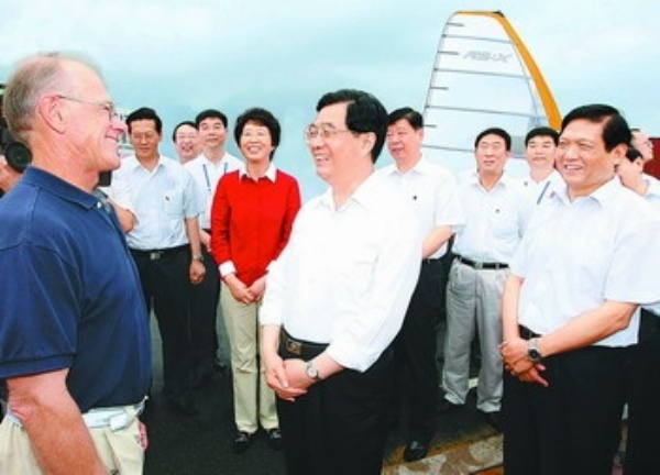 中国帆船队的运动员见到总书记,高兴地迎上前去。胡锦涛同运动员们一一握手,了解他们的训练情况。运动员们告诉总书记,中国队已经做好了准备,争取在比赛中创造佳绩。胡锦涛鼓励大家:要有信心,要有斗志,在奥运会上赛出水平、赛出风格。