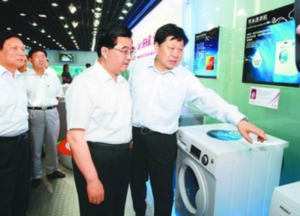 在海尔集团,胡锦涛走进企业产品展示厅,参观企业最新研发的高新技术产品,询问生产和销售情况。在机声隆隆的家用空调生产车间,胡锦涛仔细察看生产流程,并同企业经营管理人员和一线工人交谈,勉励他们继续奋发进取,把企业搞得更好。