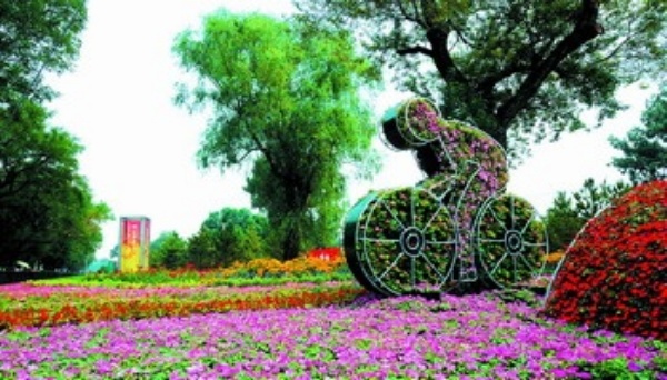 奥运会将至,北京各主路街心花园的奥运主题花坛静静装点着盛夏的北京,在给京城带来片片绿色、丝丝凉意的同时,把奥运气氛逐渐推向火热。