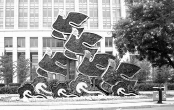 奥运会前夕,北京街头陆续增添了许多富有特色的绿色雕塑,把城市装点得更加美丽。 新华社记者 张燕辉摄