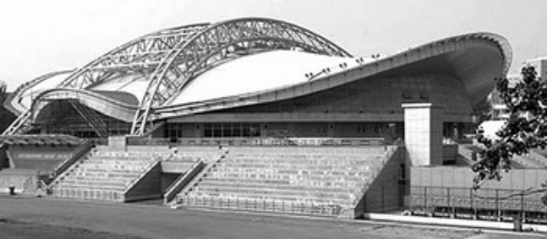 此外,在五棵松篮球馆中,还采用了室内新型PRC轻质隔墙,具有较高的隔音、防水、环保和保温等性能。防水施工均使用了无味无毒的JS复合防水涂料。屋面采用PVC防水卷材系统,包括防水、吸音、隔热、保温等9种材料组成的复合屋面。在屋面PVC卷材施工中,使用自动焊接设备焊接,保证了16000平方米卷材的接缝严密,经过一个雨季的淋水检验无渗漏。