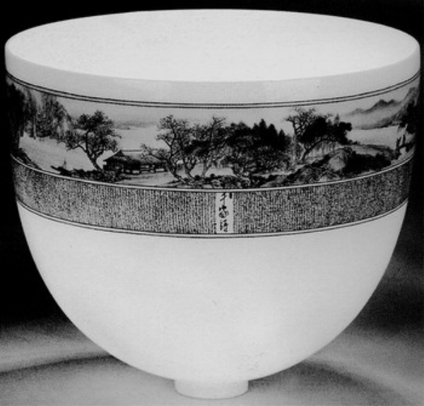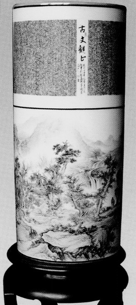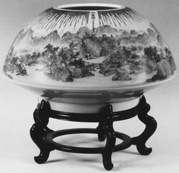也许就是这“静”起了作用,他作品上的山水场景和笔墨情趣都显得不张扬,色泽和层次都让人感到自然平和,没有任何生涩牵强之感。这样的境界,即便是在陶瓷彩绘领域,也是很难得的。