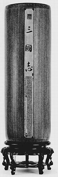 就在《三国志》写了一半的时候,一个意外事故几乎让他前功尽弃。有一回,他拿了杯茶水,“可能是思考入了神,手没拿稳,杯子不知怎么就打在陶瓷箭筒上,又掉在地上。”他回忆那个过程都显得精神紧张,“只听啪的一声,我脑子里一片空白。回过神一看,还好只是杯子碎了,瓷筒并没破,不过,茶水溅到了陶瓷上,一大片字被冲得模糊不堪。”这个时候要把冲掉的字补起来相当困难,可我没别的办法,只能继续下去。不仅要找到原文里面字的位置,而且大小要跟原来的相当。”