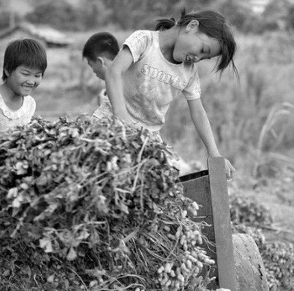 7月15日,在广西南宁市良庆区吴圩镇,几名孩子在帮着搬运花生。随着强降雨过程的结束,广西各地群众抓紧农时,积极抢收庄稼。 新华社记者 周 华摄