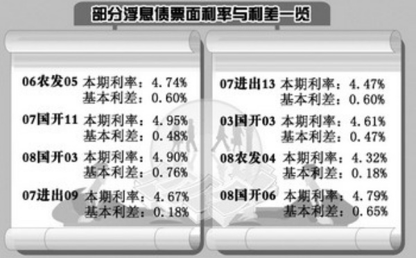 目前市场上还有10多只企业债是浮息债,包括:01三峡10、03华能2、04首旅债、04华电2、05神华债、澜电03、03电网(2)、03网通(2)、04通用债、04京地铁、05申能债、05国网(2)和99三峡债等。