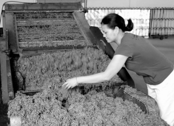 7月19日,广西柳城县伏虎华侨农场茶厂的工作人员在生产车间碎茶。随着“夏采”摘期的到来,受年初冰雪灾害影响的广西各大茶叶产区受灾茶农纷纷抢时间采制夏茶精品,全力挽回损失。