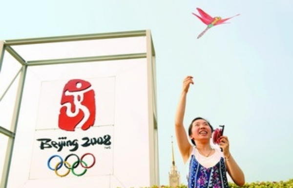 年轻的设计师王帆在北京展览馆广场放风筝。