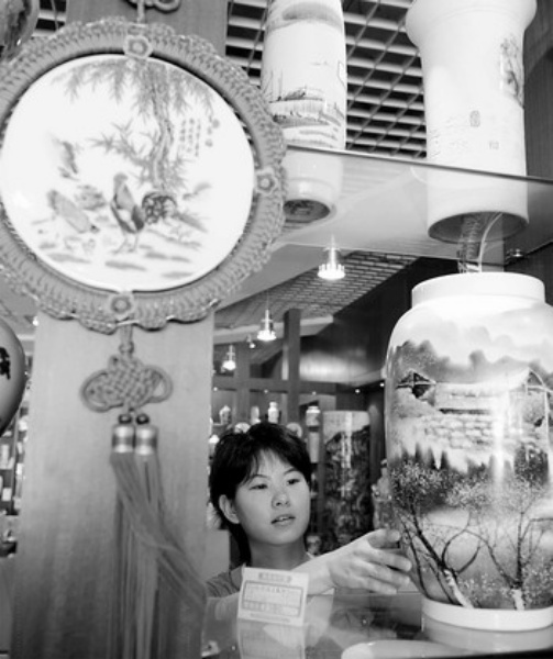 7月20日,以“绿色包装、喜迎奥运”为主题的环保活动在北京地区的800多家景德镇陶瓷经销店全面展开。这次活动重点是禁用不可回收降解的塑料、化纤包装,代之以绿色环保包装,以实际行动迎接奥运。新华社记者 张 领摄